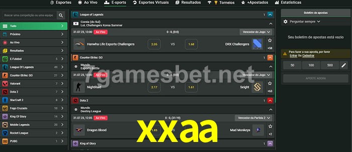 O xxaa oferece uma grande seleção de opções de apostas em e-sports com probabilidades competitivas